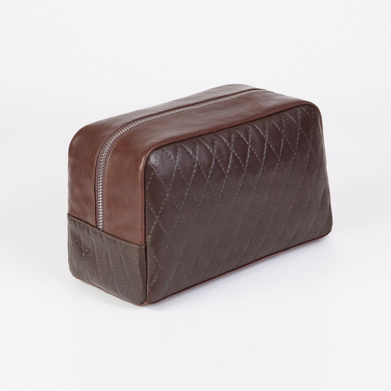 Несессер объемной формы, закрывается на молнию. Снаружи на задней стенке карман на молнии; с правой стороны ремешок на запястье. Внутри справа 1 карман по длине изделия, слева – такой же карман, разделенный строчкой на 2 части.